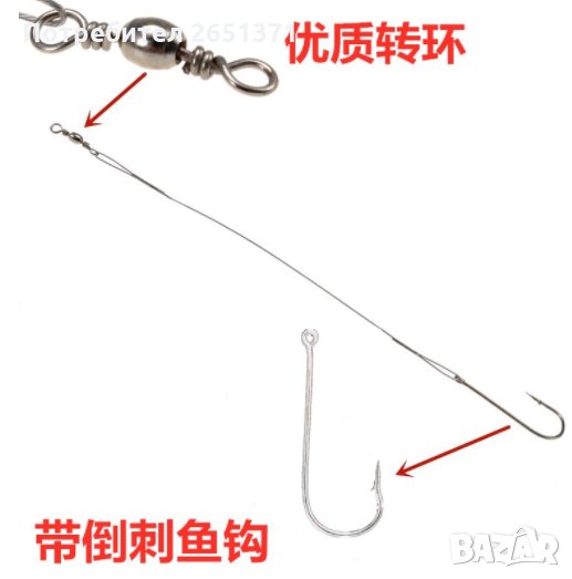 Кука със стоманен повод за риболов на хищни риби.