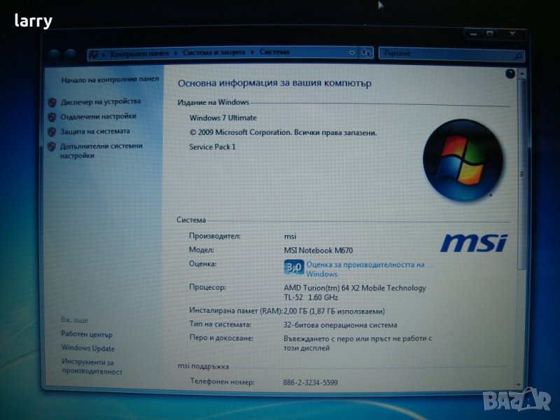 Процесор: AMD Turion TL-52 1.60 Ghz двуядрен