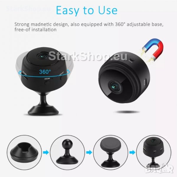 Супер малка безжична FullHD WiFi камера с магнит за закачане на всякакви повърхности. Широк ъгъл на картината, Motion Detection – засичане и уведомление при движение на вашият мобилен телефон. Топ модел 2020година!