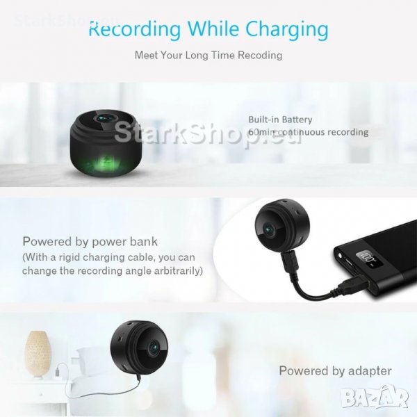 Тази мини-камера има широкоъгълен обектив от професионален клас, който дава голям обсег за наблюдение, за да следите това от което имате нужда. Идеална за къща, офис ,бебешка камера, домашна камера и тн.