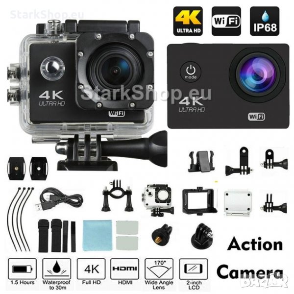 С тази 4K WiFi Action камера може да снимате, докато карате ски, колело, мотор, кола, докато се гмуркате или се катерите в планината. Има аксесоари за закрепване на различни места като колело, каска, мотор или колан.