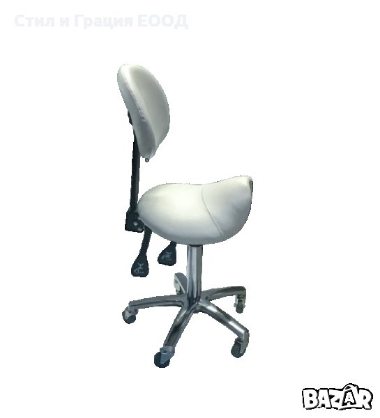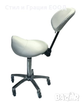 Козметичен/фризьорски стол - табуретка с облегалка Rodeo 49/61 см - бяла