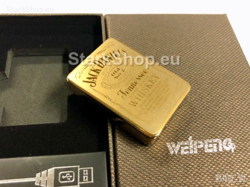 Луксозна Електрическа USB запалка Jack Daniels за цигари без пламък, с презареждаема батерия, зареждаща се с USB. Без бензин и газ! За многократно ползване. В луксозна подаръчна кутия.