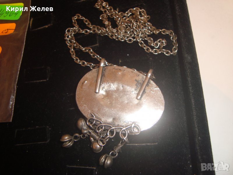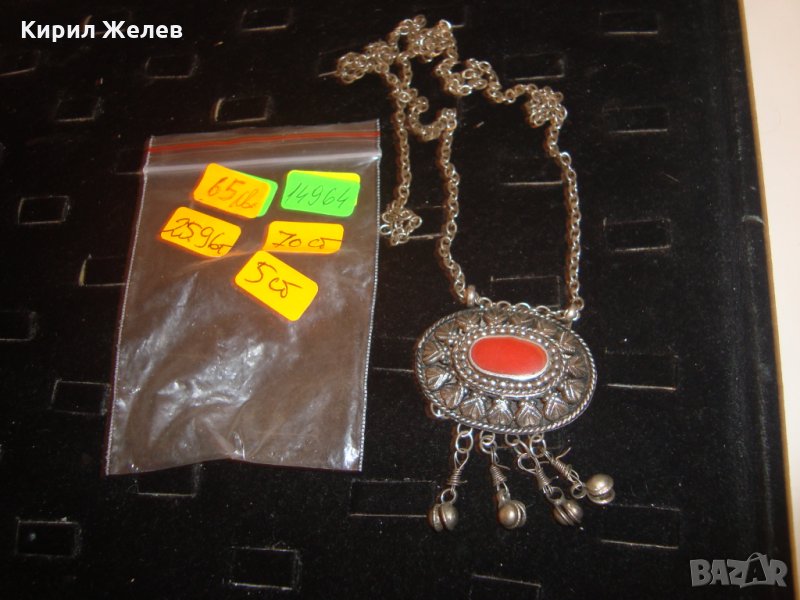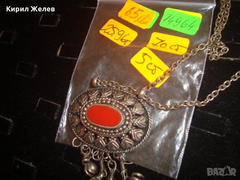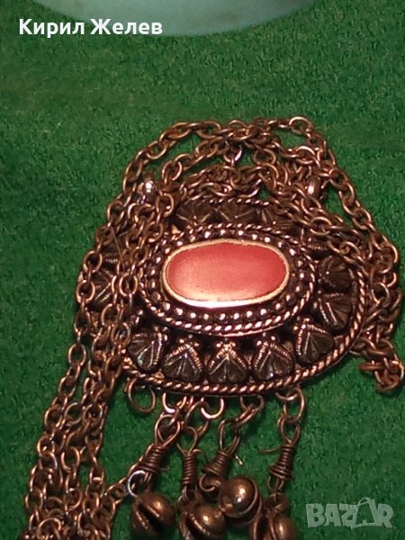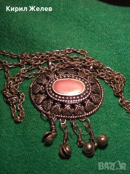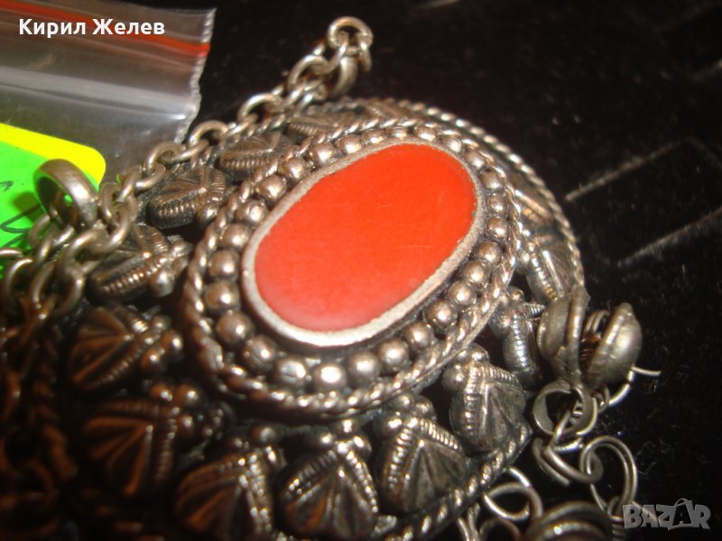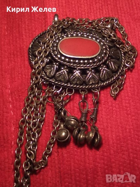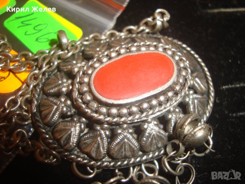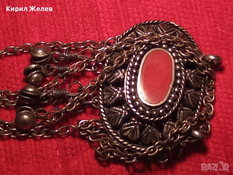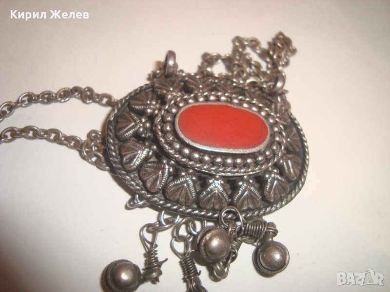ВЪЗРОЖДЕНСКИ ПОСРЕБРЕН СТАРИНЕН НАКИТ с ГОЛЯМ КАРНЕОЛ ЕТНОГРАФСКО БИЖУ МЕДАЛЬОН 14964
