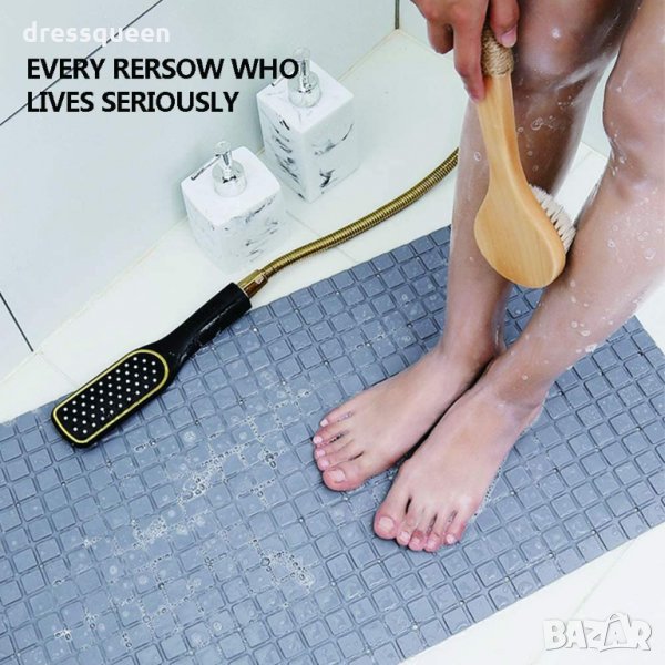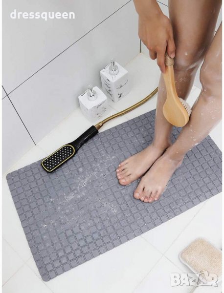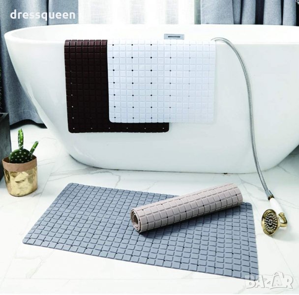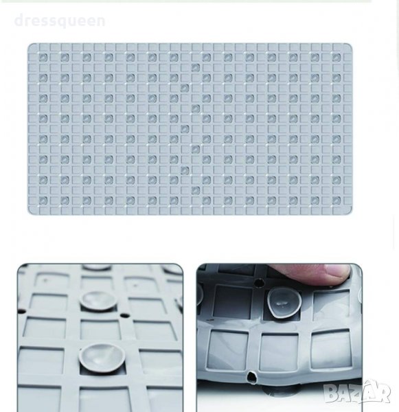 Постелката за баня е снабдена с вендузи, които залепват здраво за пода на банята и не позволяват хлъзгане. Постелката е подходяща и за поставяне в душ кабини и вани.