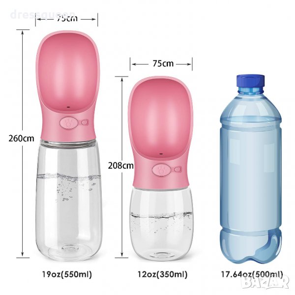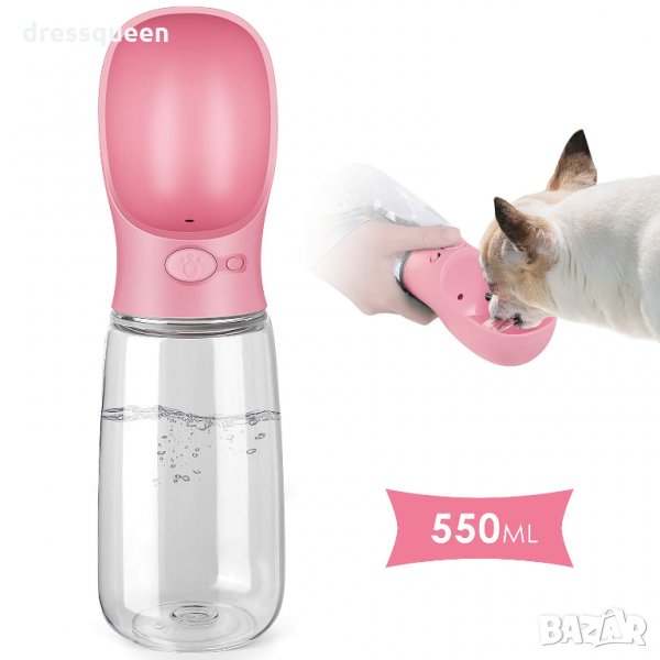 Преносима бутилка за вода за кучета, 350мл. в розов и жълт цвят