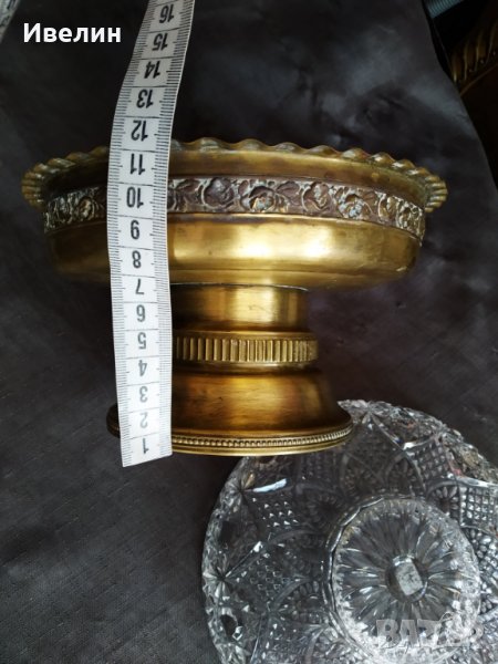 стара купа фруктиера арт деко.месингов корпус,кристална купа.