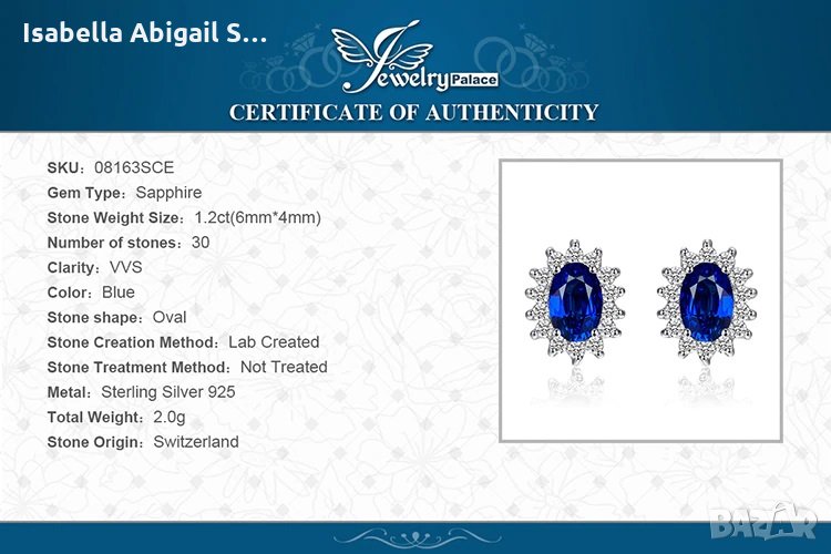 Обиците са изработени в Корея, сапфира е обработен в Швейцария, при комбинация с пръстена и висулката цената за трите общо е 130лв, пръстена в размер 22мм.За повече инфо/снимки на лично съобщение!Изпращаме всички стоки с -10% отстъпка от куриерската услуга до офис на ЕКОНТ