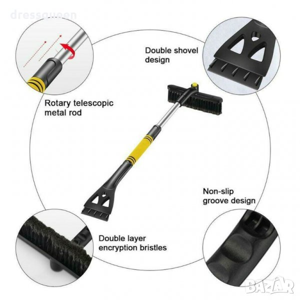 За лесно и бързо почистване на автомобила от сняг и лед. Ергономична, телескопична дръжка за по-голямо удобство. Много компактна, не заема място.