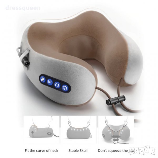 - Дизайн: U-образна масажна възглавница с обгръщащ дизайн с подобрена опора, приляга на кривата на главата, защитава шийния гръбнак.