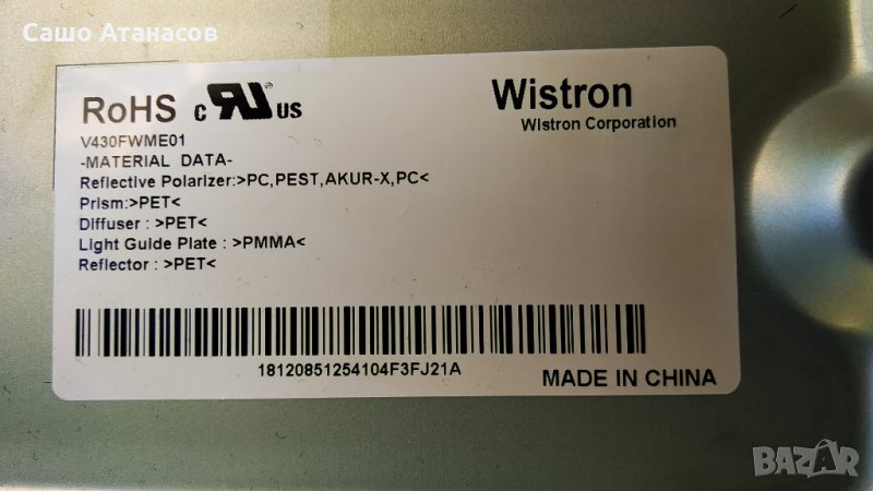 Модули от SONY KDL-43W808C със счупена матрица (панел V430FWME01 )