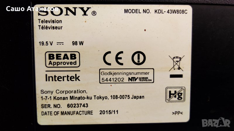 SONY KDL-43W808C със счупена матрица ,1-893-880-21 ,15STM6S-ABC02 ,T550HVN08.2 ,ACDP-100D01