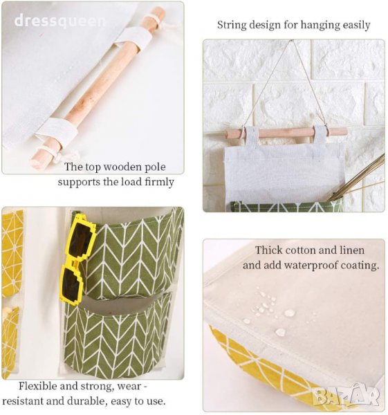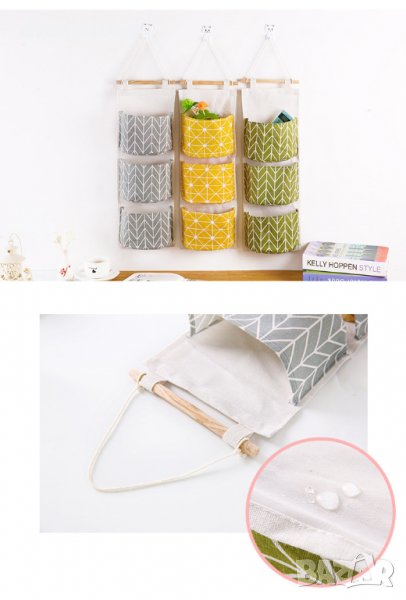 Изключително практичен и подходящ за стена. Може да се комбинира чудесно с постелки, покривки за диван, декоративни възглавници, възглавници за столове и други. Текстилен стенен органайзер, разполага с 3 отделения с еднаква големина. Лесно се поставя. Материята на изработка е текстил и дървена летвичка.