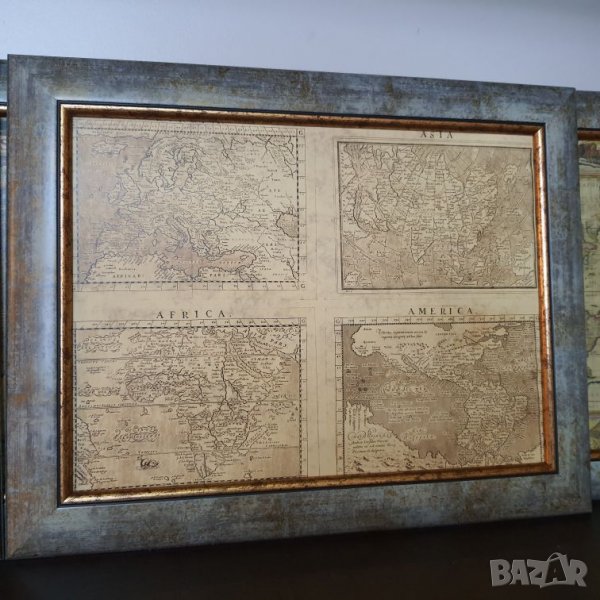 Предлагам Ви копия на 5 стари географски карти поставени в много ефектна рамка .Разгледайте ги и при интерес посочете за коя картина става въпрос.разм.39х49см