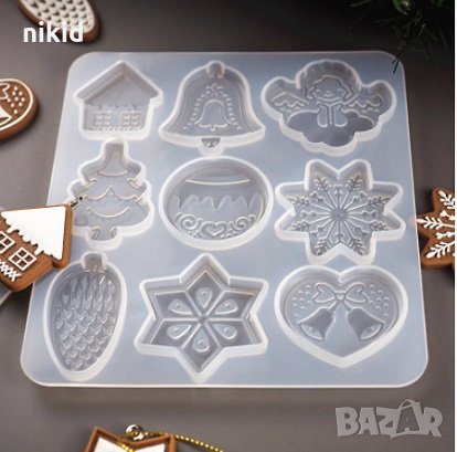 1 вид - 9 Коледни фигурки висулки силиконов молд форма фондан смола глина гипс шоколад декор → Обява 30543707