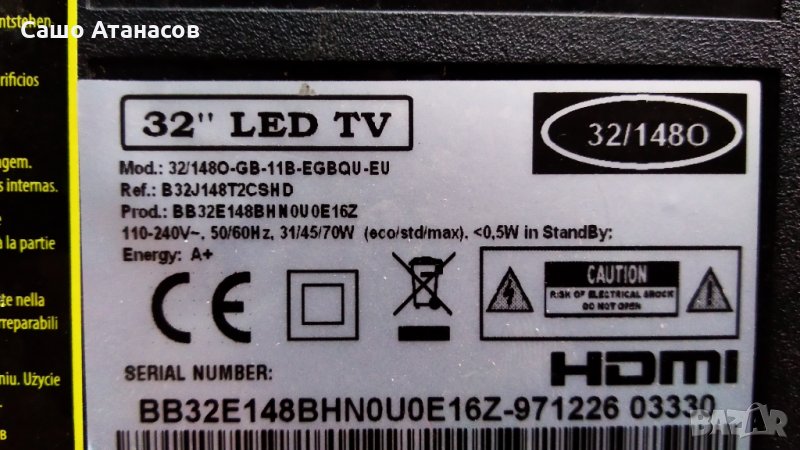 BLAUPUNKT 32/148O-GB-11B-EGBQU-EU със счупена матрица ,TP.MS3463S.PB711 ,IR-32CA-1 ,LSC320AN10-H02
