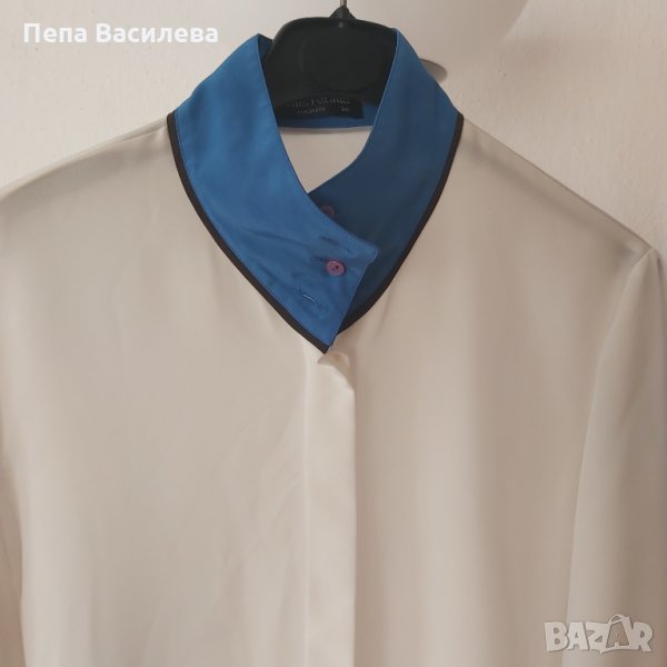 Стилна и елегантна дамска риза на френската марка Louis Feraud.100% полиестер. Нова,от подарък. Закупена от чужбина. Контрастни маншети. Яката може да се носи по няколко начина.