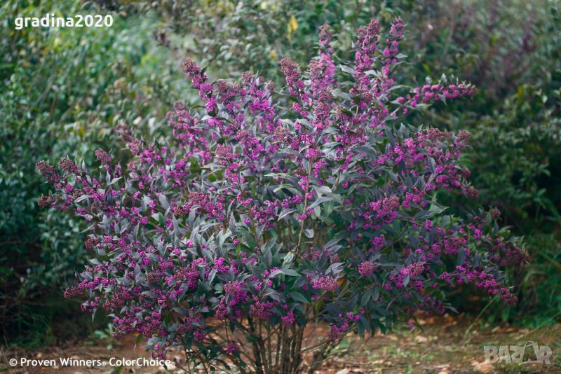 Произход основно от Източна и Югоизтачна Азия, но има представители в Австралия и Северна Америка. Има както топлолюбиви i вечнозелени видове, така и такива, които растат успешно в райони с умерен климат и са листопадни. Храстите може да са високи и широки до 2-3 м. Листата са срещуположни, грубички, фино назъбени. Цветовете са розово-бели, събрани в гъсти съцветия. Но без да са особено декоративни. Декоративна стойност каликарпите имат с ефектните си плодове през есента, когато образуват многобройни, необичайно обагрени и необичайно изглеждащи плодове. Те могат да бъдат бели или лилави - цвят маджента.