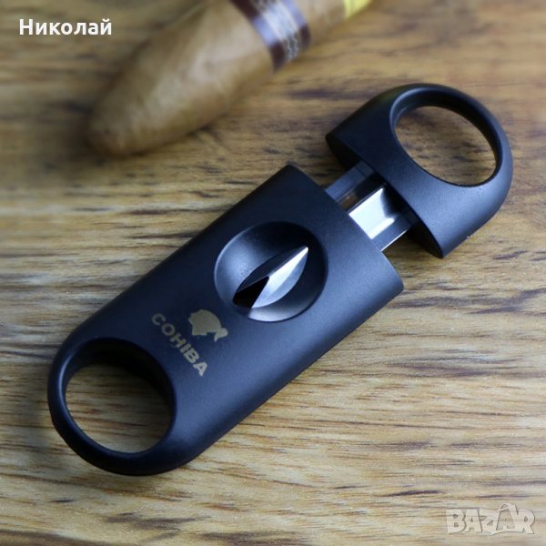Резачка за пури с V образно рязане . Корпусът е изработен от пластмаса , острието е изработено от стомана. Подходяща за подарък за пушачи , рожден ден , имен ден и др.