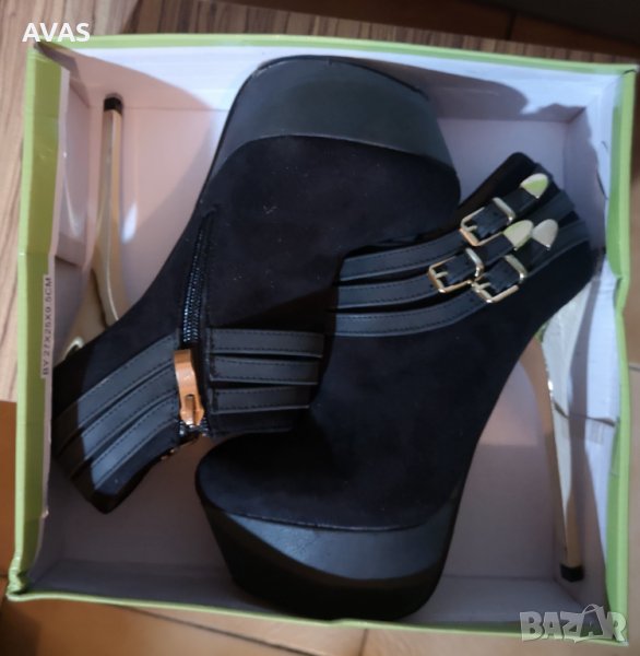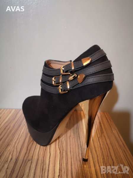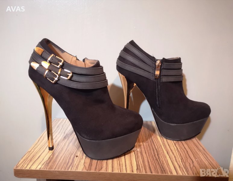 Нови велурени боти на ток със Златисти детайли. Черно с тъмно сиво, 37 номер. Височина на тока 14.5 см, от които 4 см платформа под пръстите.