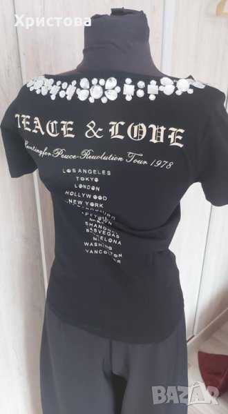 Ефектна черна тениска с камъни в черно. Качествено трико и еластан. Втален модел по тялото. Размер С/М. Ползвана, но като нова. Символични цени на всички дрешки в профила ми. Опция тест и преглед. Доставка с отстъпка до офис ЕКОНТ. 0899243418