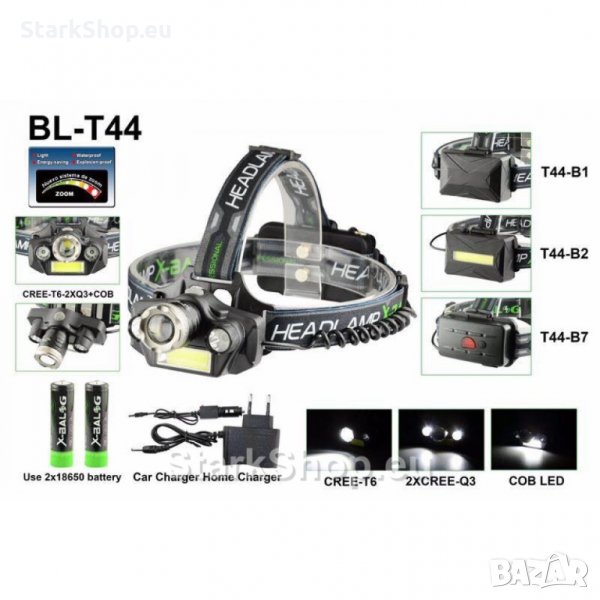 – Чип: 1бр. CREE T6 LED / 2бр. Q5 LED / 1бр. COB LED