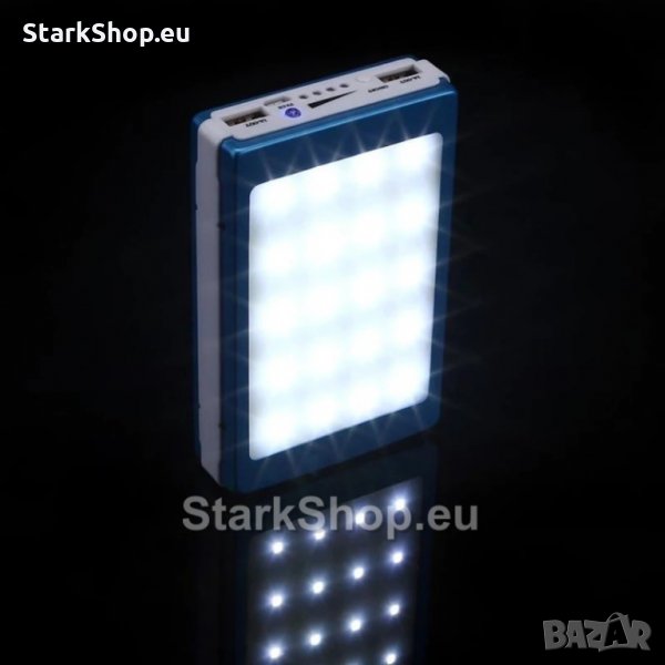 Соларен POWERBANK външна батерия 6000mAh за зареждане на таблети, смартфони, и други устройства с мощен LED фенер. Основните преимущества на тази външна батерия са големия капацитет, възможността за зареждане на две устройства едновременно и не на последно място са соларният панел и лед лампата. Тази батерия може да бъде много добър източник на светлина, когато ви затрябва. Всичко това я прави идеална за редица случаи – риболов, къмпинг, разходки в планината, планински преходи, или когато сте на палатка. Лед лампата може да работи на различни режими и така да удължи времето на светене с доста време, а също и разполага с SOS режим на светене.