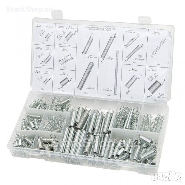 Комплект метални пружини 200 бр. различни размери в удобна кутия за съхранение.