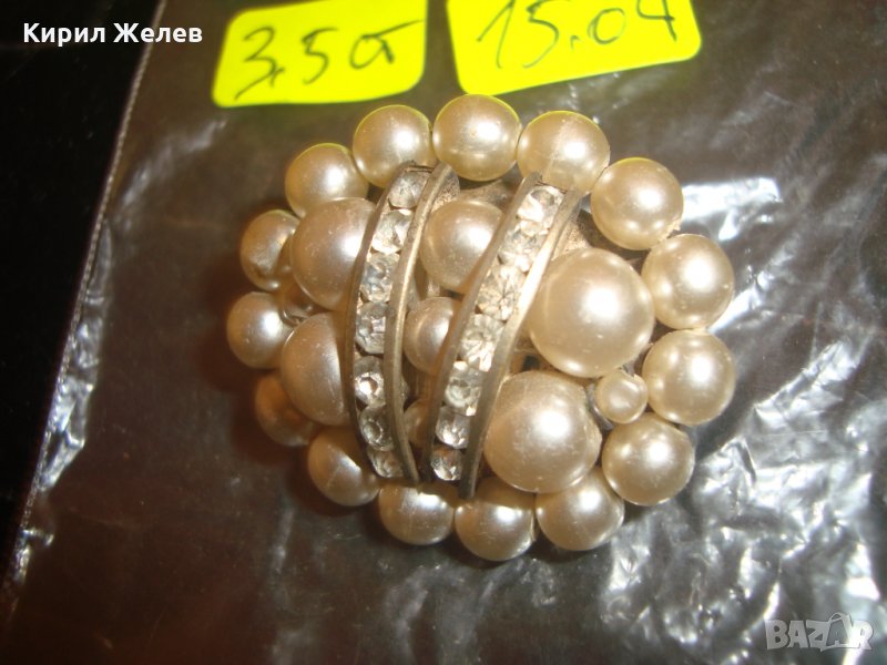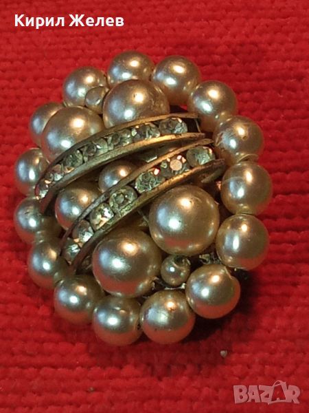 ПЕРЛЕНА ВИНТИДЖ РЕТРО АРТ-ДЕКО БРОШКА с КРИСТАЛЧЕТА 41123