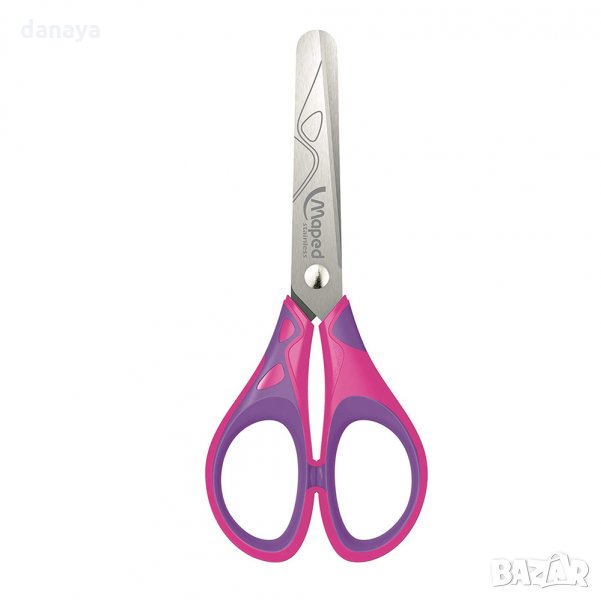 Ученическа ножица за рязане и творене в училище или у дома. Ножицата има обли върхове за защита от нараняване. За по-голямо удобство, острието ѝ е разграфено от горната страна до 5 cm. Дръжките имат гумирано покритие, за да не се хлъзга детската ръка при работа. Чудесна за рязане на хартия и картон. Предлагат се в различни цветове.