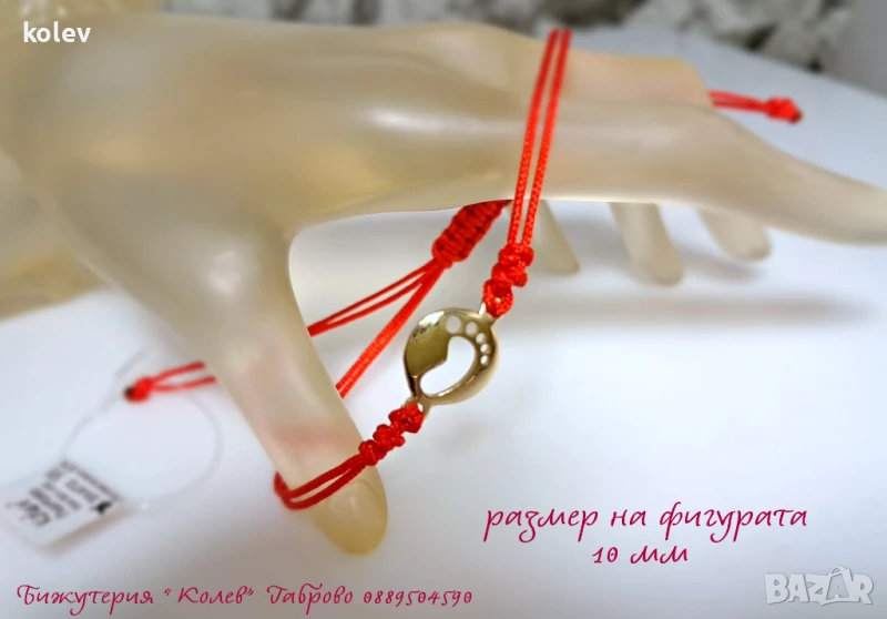 червен конец – символ на закрила, допълнена от изящен златен елемент във формата на бебешко краче. Перфектният подарък за новородено, кръщене или млада майка – носещ смисъл, стил и обич.