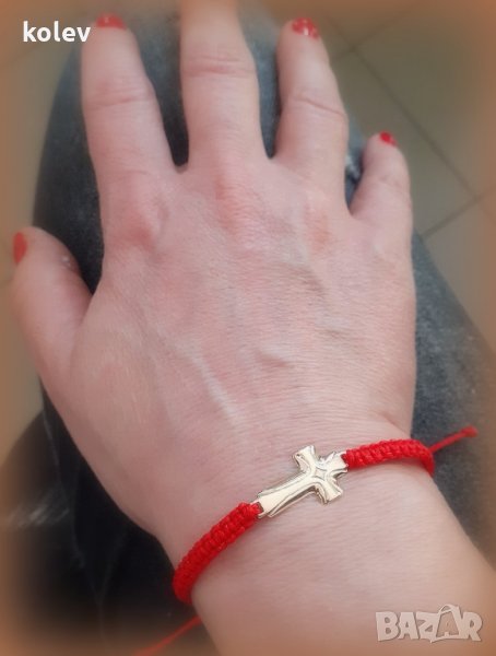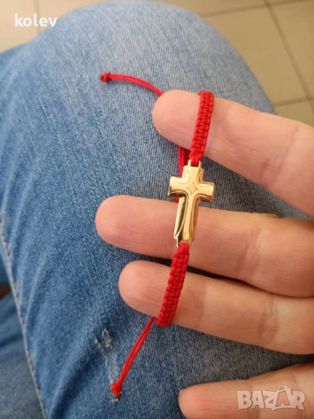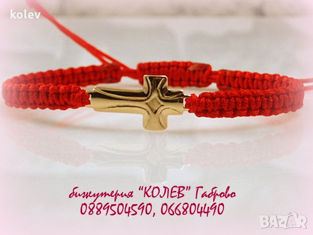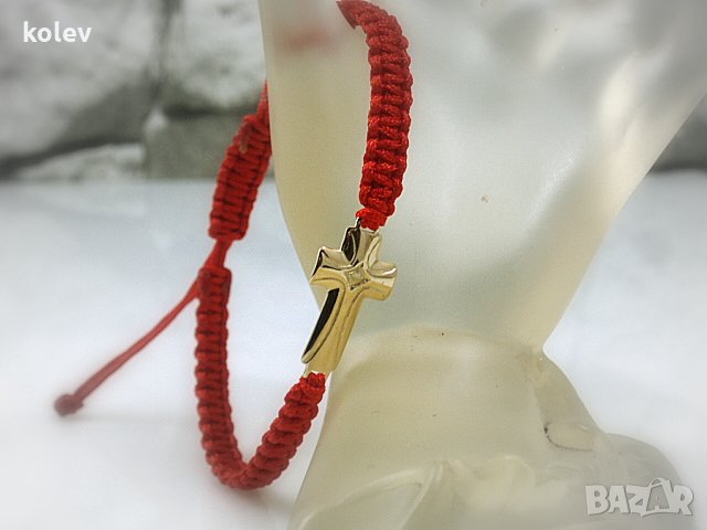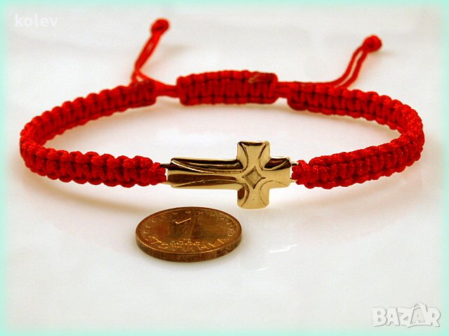 златен кръст в гривна червен конец, за мъж или за жена