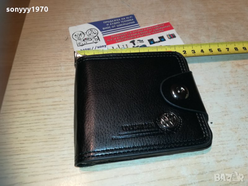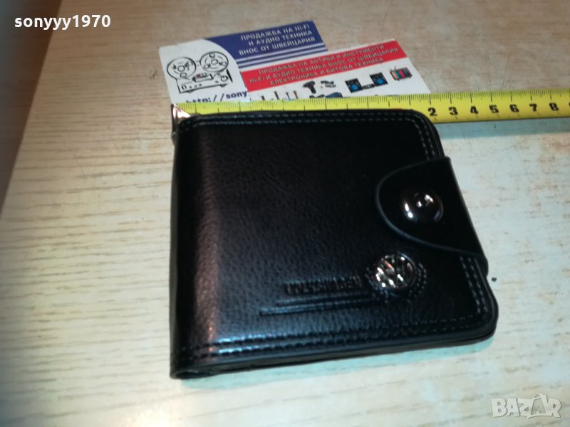 Мъжко портмоне в черен цвят с отделения за банкноти, монети, карти и други. Изработено от кожа, декорирано с емблема на Volkswagen. Размери: 10х11 см и 22 см разгънато-от днес 28.02.22г пращаме със спиди или еконт с преглед и тест след превод на капаро за куриерската услуга поради зачестили некоректни потребители-поръчки само тук в саита! по телефона и със смс не! краини цени! бартери не правиме! всеки ден нови неща-още 2-3 наши обяви тук
