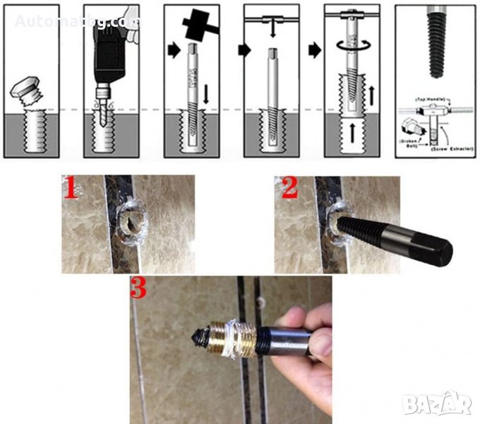 Този комплект екстрактори включва 8 отделни винтови екстрактори, вариращи от 1/8 "- 1", за да ви даде гъвкавост за премахване на тези сложни винтове. Квадратните краища на драйвера позволяват лесно закрепване към всякакви свредла или Т-образни гаечни ключове! - Материал на продукта: Висококачествена конструкция от въглеродна стомана - Размер: # 1 за 1/8 "-5/32", # 2 за 5/32 "-3/16", # 3 за 3/16 "-1/4", # 4 за 1/4 " -5/16 ", # 5 за 5/16" -7/16 ", # 6 за 7/16" -9/16 ", 7 # за9 / 16" -3/4 ", 8 # за 3/4 "-1" --Цвят: Сребърен и черен. Пакетът включва: Комплект винтови екстрактори 8бр с различен размер. 1 * пластмасов калъф за съхранение.