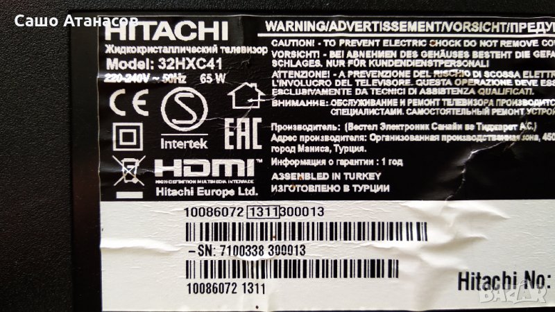 HITACHI 32HXC41 със счупена матрица ,17MB95S-1 ,17IPS19-5 ,6870C-0442B ,VES315WNDL-01 ,17LD143-4 → Обява 30580733