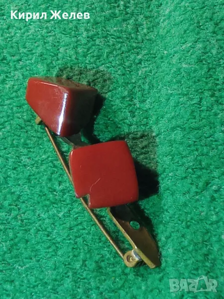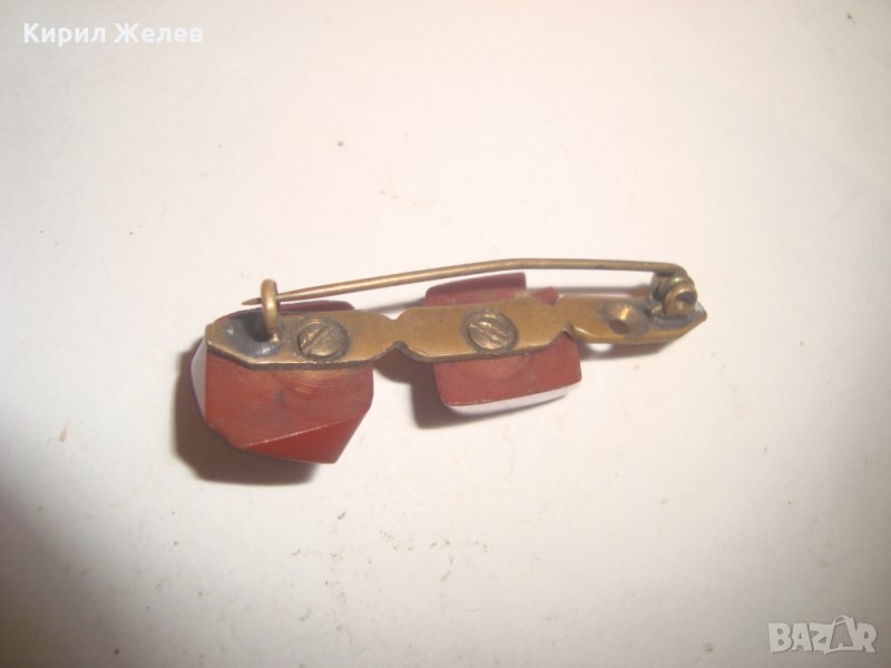 СТАРА МЕСИНГОВА АРТ БРОШКА с НАТУРАЛНИ КАМЪНИ 12335