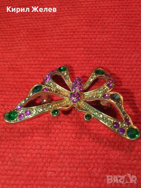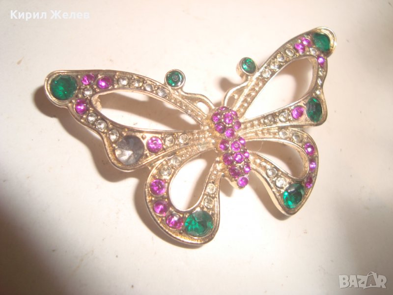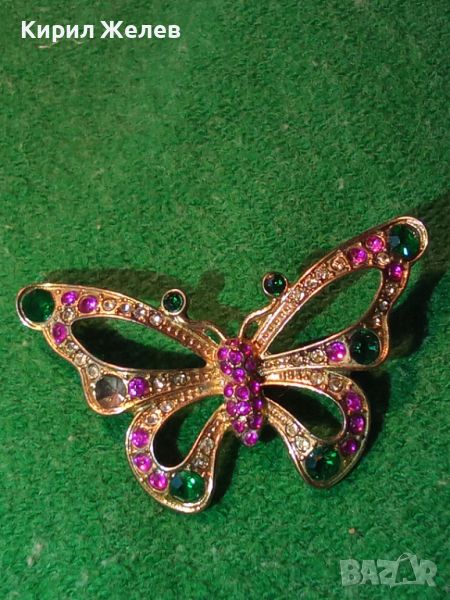 ЗЛАТИСТА БРОНЗОВА КРАСИВА ПЕПЕРУДА АРТ БРОШКА с МНОГО КАМЪНИ и КРИСТАЛИ 68131
