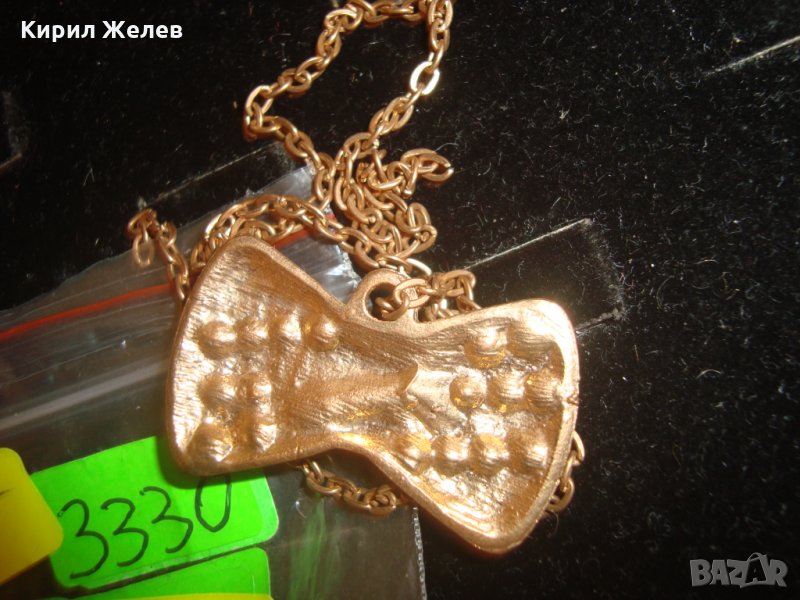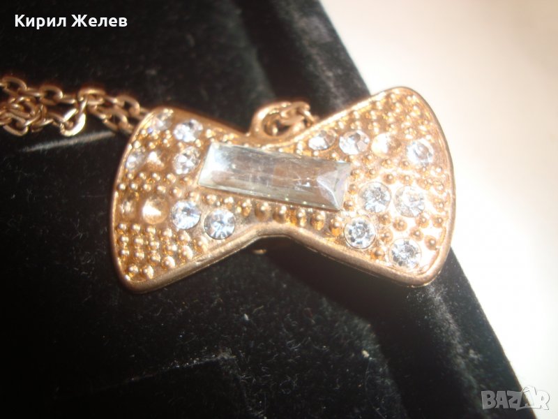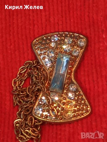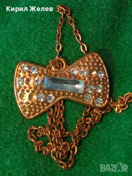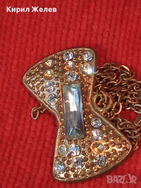 РЕТРО ПОЗЛАТЕН МЕДАЛЬОН ПАПИЙОНКА с ФАСЕТ КРИСТАЛИ и ВЕРИЖКА 3330