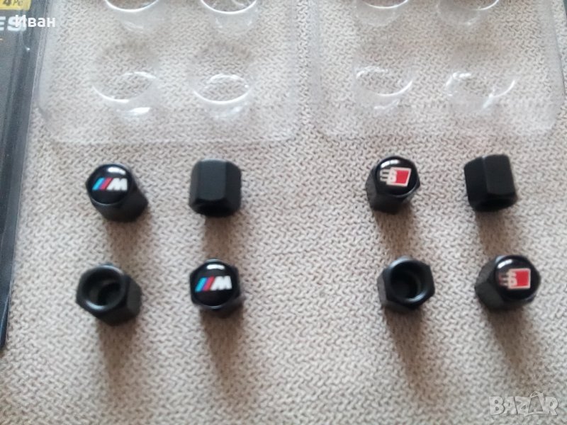 Продавам високо качество черни метални капачки за винтили на гуми с емблема на БМВ М и Ауди С линия.