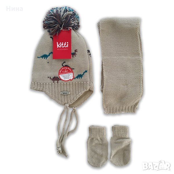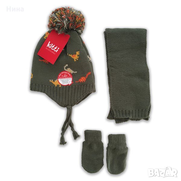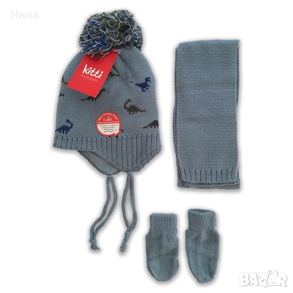 🧣🧤 Kitti комплект от 3 части - шапка, шал и ръкавици. Размер 0/18 месеца. 🧤🧣За момче. За още моделчета разгледайте и останалите обяви в профила ми.