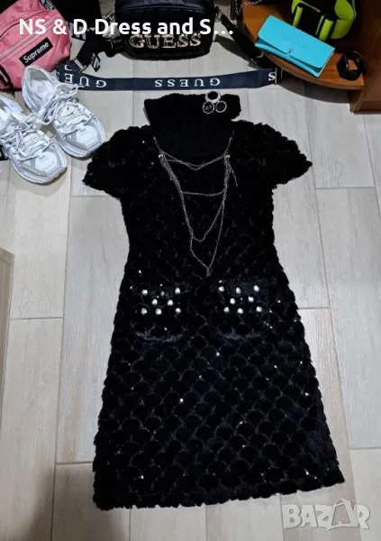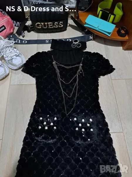 Стилна екстравагантна дамска рокля от естествен заешки косъм с подвижен гердан → Обява 30587856