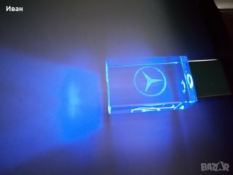 Цена за 1 брой стъклена светеща флаш памет с емблема на марка автомобил в оригинална луксозна ударо-устойчива пластмасова кутийка - 24 лв.