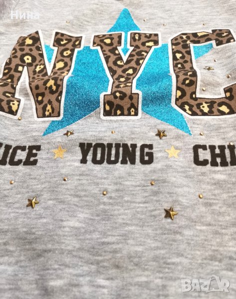 Ватирана блузка Watch me за момиче, в сиво със свежи, лъскави акценти 🌟 в предната част. Налични размери: 110 см, 116 см, 122 см, 128 см и 134 см. За още моделчета разгледайте и останалите обяви в профила ми.
