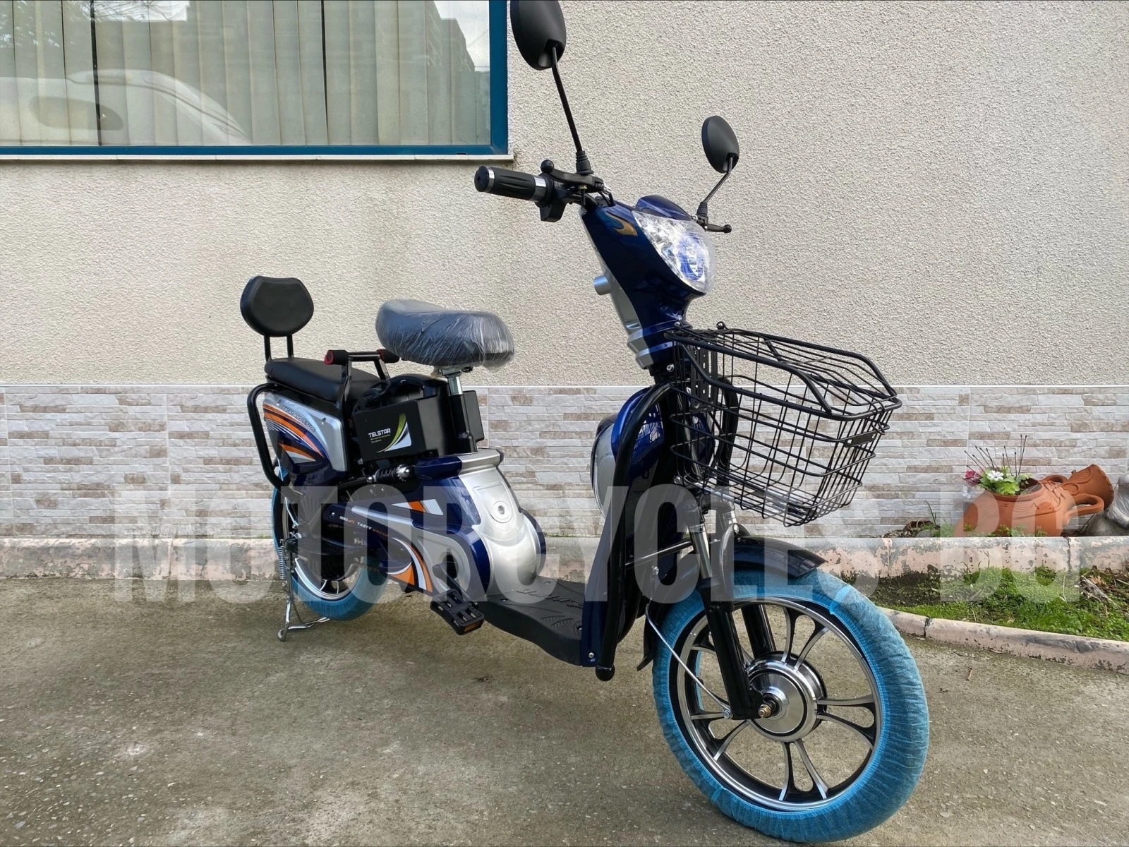 ЕЛЕКТРИЧЕСКИ СКУТЕР TelStar TBSLD- BIG NEW с двойна седалка и педали 2023 ПОДАРЪК: огледала за задно виждане (2бр. ) дистанционно с аларама (2бр. ) метална кошница за пазар с капак механизъм за заключавне на задната гума + ключ с фенерче Допълнителна информация: Луксозна окомплектовка: мигачи със звукова сигнализация, дигитален LCD дисплей с 5 параметъра, сгъваеми степенки, облегалка задната седалка- три скорости - предна и задна спирачка - големи балонни гуми - мигачи - стоп - багажно джобче на рамката - супер олекотен - верига и педали - предни - задни амортисьори - мощен LED преден фар- удобни кожени предна и задна седалка с облегалка - клаксон * -Големи гуми 16" + преносима батерия +100лв Цена с екстри-1199лв. Налични цветове: син, червен и черен ВЕЛОСИПЕДА Е НОВ, ПОСОЧЕНАТА ЦЕНА Е СКЛАДОВА ЗА МОТОПЕД В КАШОН! Изпращаме по куриер до офис и до дома на клиента. За повече информацея посетете нашия сайт www. motorcycles. bg или на тел. 0887302625