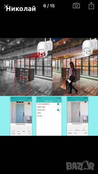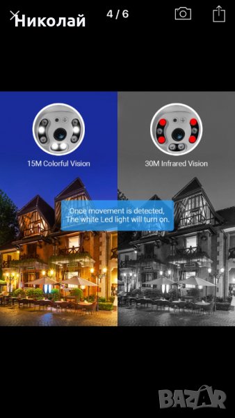 - Засичане на движение - моментно известяване на смартфона чрез имейл със снимка, запис на SD картата или на FTP.