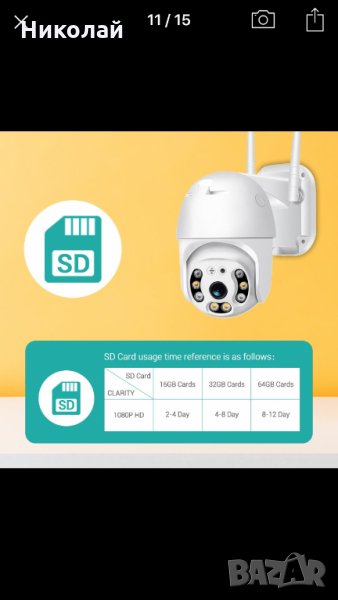 Запис на SD карта: 8GB: 2 дена; 16GB: 4-5 дена; 32GB: 8-10 дена; 64GB: 18-20 дена. Времето за запис е приблизително и зависи от избраната разделителна способност на камерата, кадрите в секунда и други параметри.