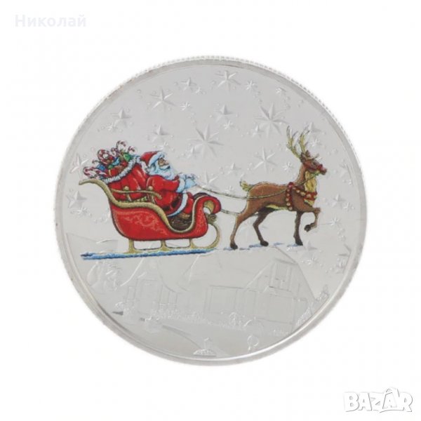дядо коледа , весела коледа и нова година . От предната страна е изобразен дядо коледа с шейна с подаръци и елен , от задната страна е изписано 'Merry Christmas" - Весела Коледа . Монетата е изработена от метал и е в предпазна капсула. Подходяща е за подарък за нумизмати , коледен и новогодишен подарък , подарък за деца , монета за баница с късмети , рожден ден , имен ден и др.