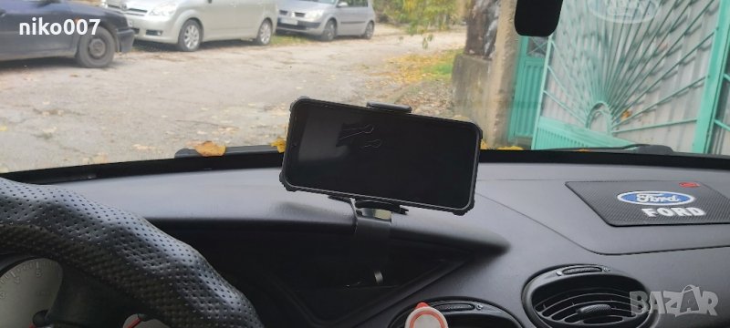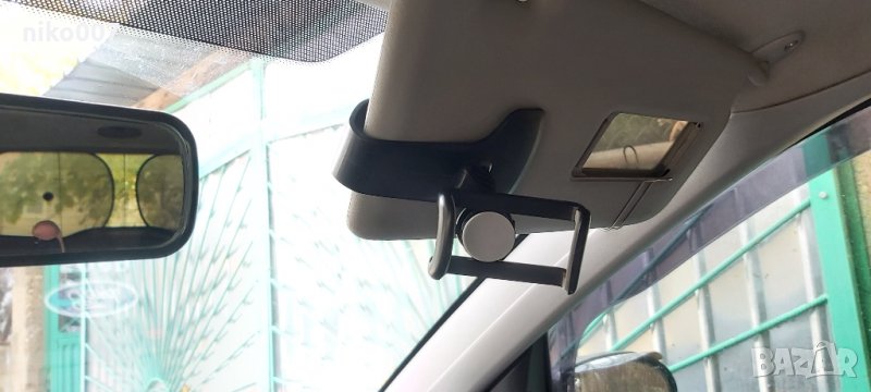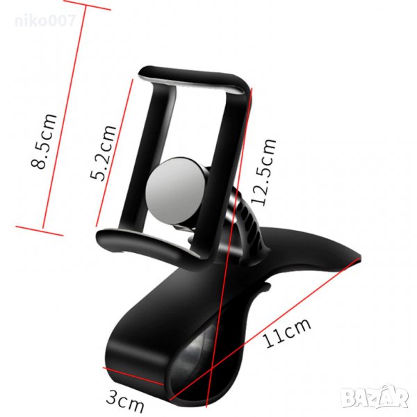 Универсална стойка за телефон за монтаж на таблото на автомобила.Може да се монтира и на огледалото и на сенника-личен опит.Имам я същата и на последните снимки се вижда монтажа.Щипката държи много здраво без проблеми.