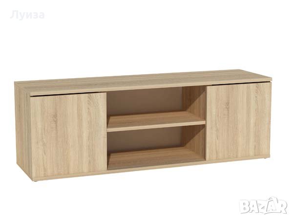 ТВ шкаф в цвят дъб Сонома с 2 врати и 2 ниши. Той е едно необходимо допълнение към вашия интериор. Проектиран в модерен стил, шкафът се вписва идеално в дневната зона. Поставете вашия телевизор с плосък екран на около 120 см широк плот. Отдолу има 2 отворени отделения - пространство за приемника, DVD плейъра и други устройства. Накрая пространствата зад двете отварящи се врати чакат вашите филми и игри.