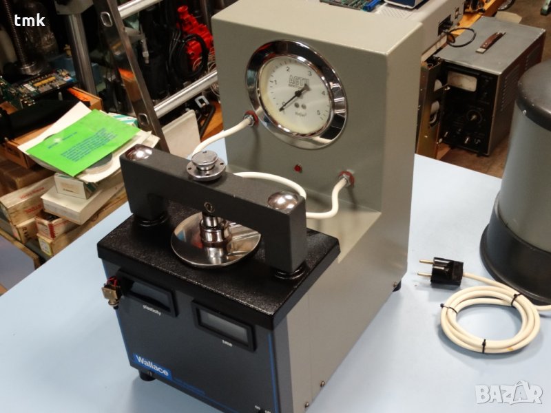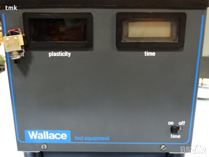 Фирма "Техно Маш Комплект" ЕООД предлага леко употребяван, но в отлично състояние и със запазени технически показатели уред за измерване на пластичност на каучукови проби, производство на Wallace в Англия. Уредът се състои от 2 части: